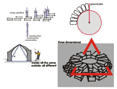 layers are horizontal, graded, while in cupolas they perpendicularly